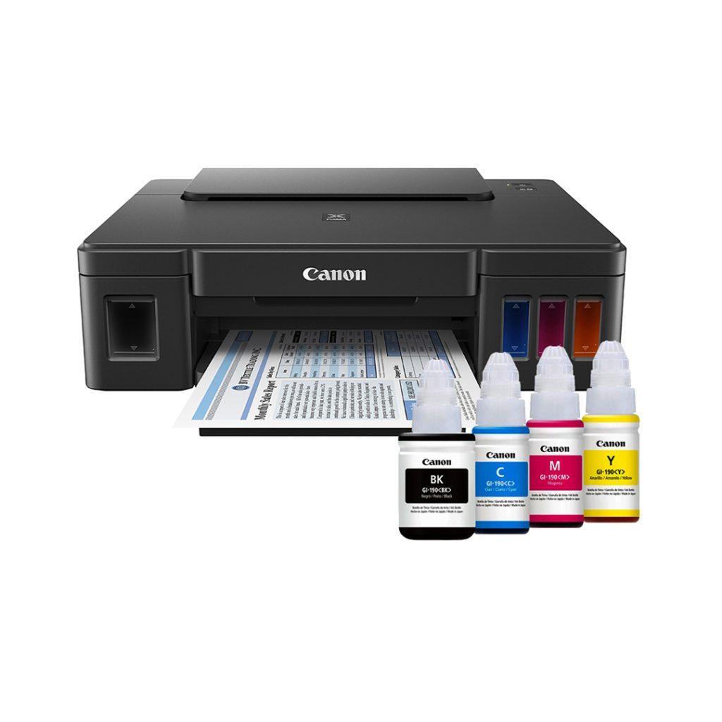 | Consumibles compatibles | Canon GI-190 Black Canon GI-190 Cyan / Magenta / Yellow |